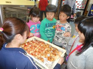 今日、保育園は、好きなパンを選べる「選びパンの日」です