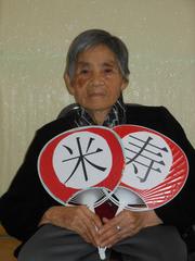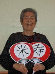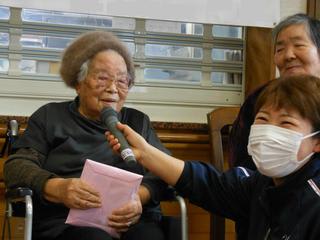 デイサービスを代表して、最高齢99歳の利用者さんより