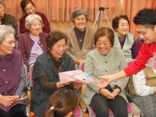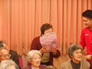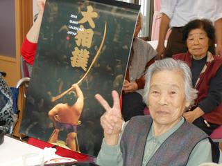 カレンダー2名、反物2名に当たり、抽選会で当たった利用者さん、とても喜ばれていました。当たった皆さん、おめでとうございます