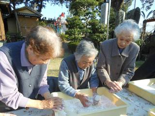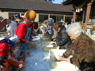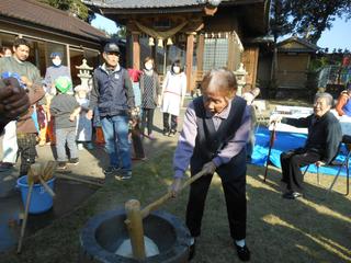 利用者さんの力強い杵つき姿に、子供達、お父さん、お母さん方、驚かれていました