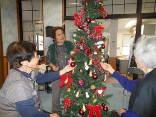 そこで今日は、クリスマスツリーを出して、利用者さんと一緒に飾り付けをしました