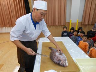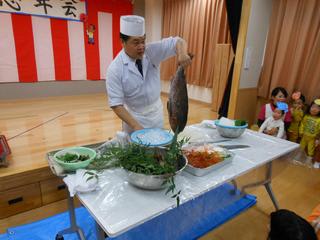 調理人さんに依頼し、「鯛の姿造り」をしていただきました