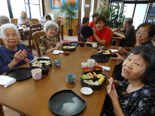 ご馳走食べて満足した後は、代表の利用者さんに万歳三唱をしていただきました。