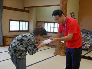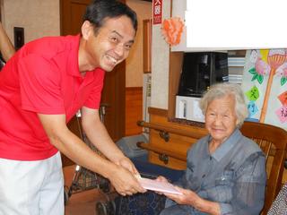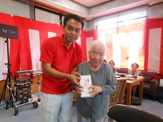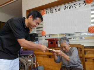 施設長より、利用者さんへ、お祝い品贈呈がありました。