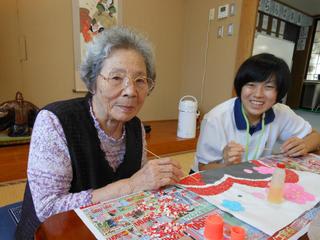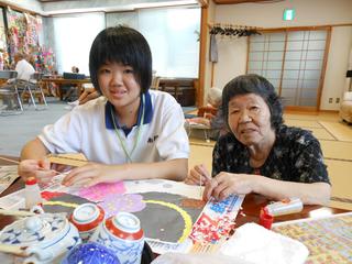 利用者さん達、中学生の生徒さんの交流を楽しまれていました