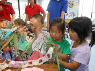 今日は、保育園子供達と一緒に七夕飾り付けをしました