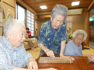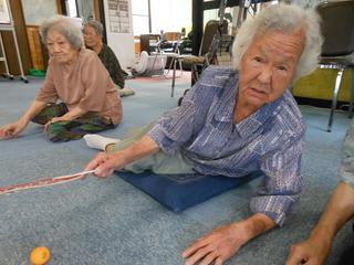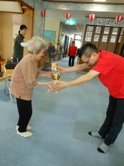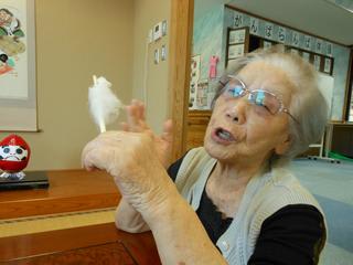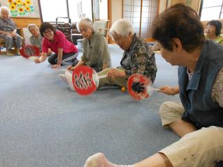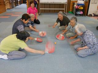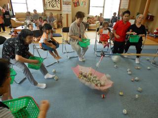 二チームに分かれて団扇とピンポンボールを使ってのレクレーションです