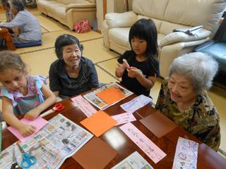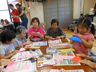 利用者さんと子供達、楽しくお話ししながら作業されて