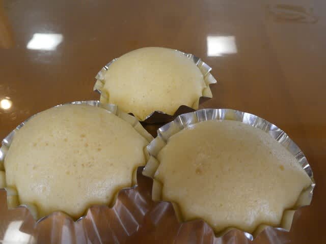 ケーキカップにタネを慎重に入れて・・・