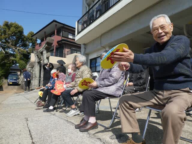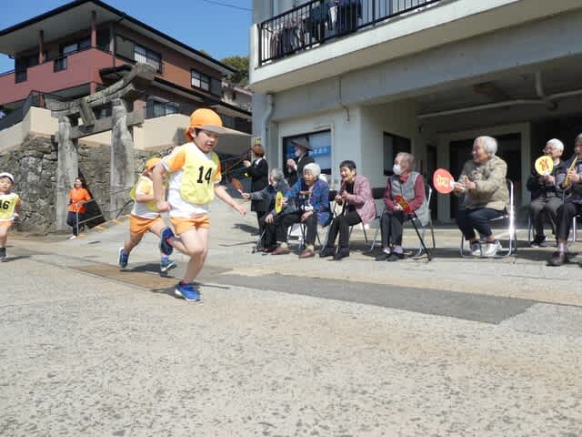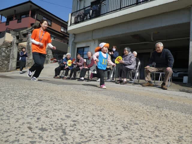 利用者さんの前を走り抜ける園児さんたちを見て、声援に力が入りました