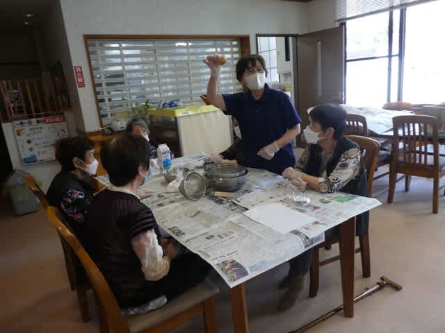 本日は利用者全員で手作りおやつを行いました