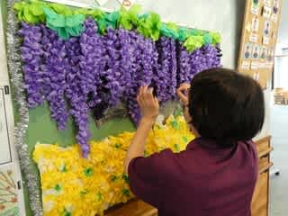 今回は藤の花の展示を行い、利用者さんから「綺麗かね」「凄かね」などの声をいただきました😊