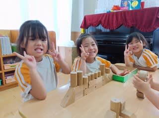 完成すると、見て~できた💕と満足感あふれる笑顔で見せに来てくれた子どもたちです