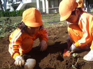 「おいもさん、出てこーい」「うんとこしょ どっこいしょ」