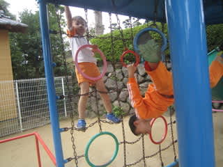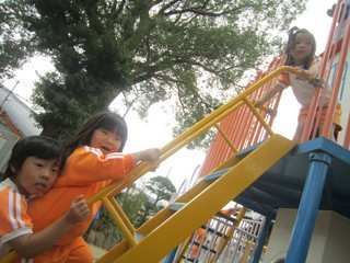 園庭って楽しいよ~ だって、すべり台があるしブランコあるから 大好きだもん