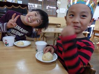 「お芋が入ってるよ」と驚きと嬉しいお顔です。