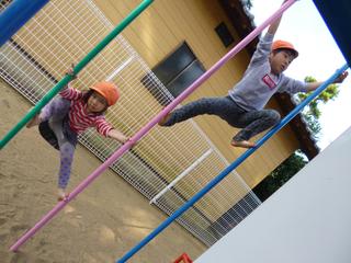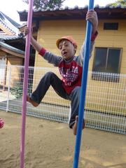 すると・・・「あ~!ぼくもできるよ~」と登り棒のぼり大会へと発展していきました
