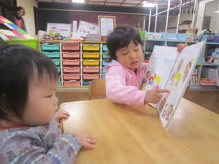 保育士の真似をして、読み聞かせをする姿も(*^_^*)