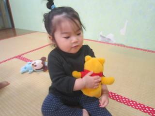 こちらはトントンと背中をたたき、ぬいぐるみを寝せようとしている姿