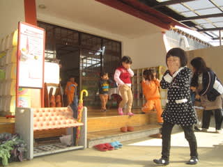 皆、保育士の後に続き、口に手を当てながら、黙々と歩いていきます。