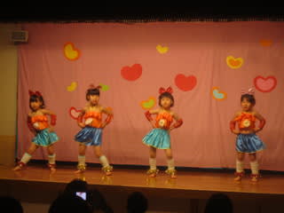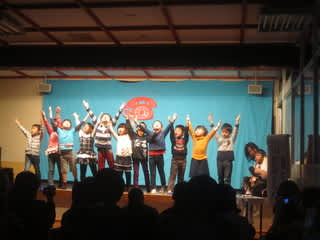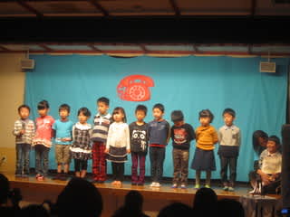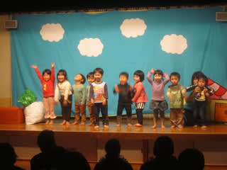 物語の進行の中に、日頃のマット運動や組体操を織り交ぜながら、軽快に可愛く演じていた子どもたちでした