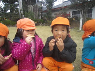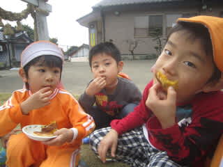 やつのホットケーキと出来立てホヤホヤの焼き芋でお疲れ様でした会も賑やかに楽しむことができた子どもたちです。