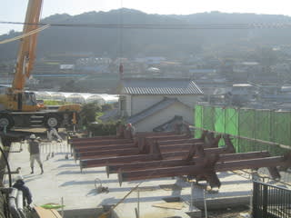 午前中の何時間かの間に鉄骨が建ってしまいました。
