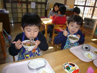 お昼寝のあとは、身支度をして「おやつの時間」です。 手はお膝で足ぺったん♫上手に座れていますね この日のおやつの、”じゃがいも饅頭”をパクっ。 「わぁ!あんこが入っとる~」と教えてくれました(*^…