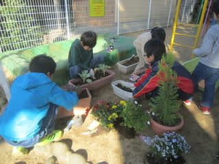 支援センターを冬休みに利用している小学生たちが、なにやら花いじり・・・