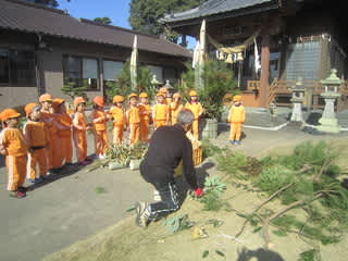 子ども達のつぶやきにも丁寧に説明をしていただきながら、門松作りを間近で見ることができました。