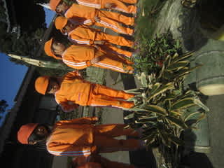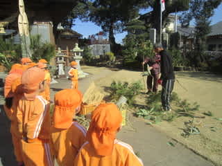こちらは境内。あけぼの学園の職員の方々が門松作りをされていました。