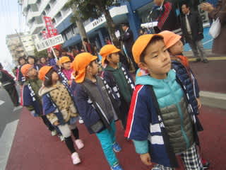 子どもたちが歩いた後は、消防団員さんのパレードの様子を見学(^^♪