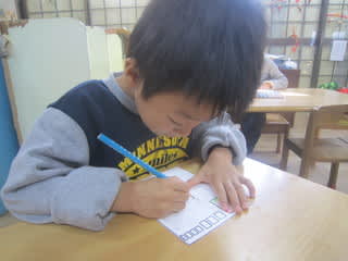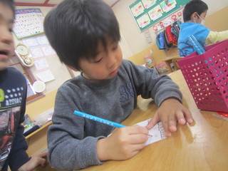 子どもたちは、お友だちや保育士に心を込めて年賀状を書いています
