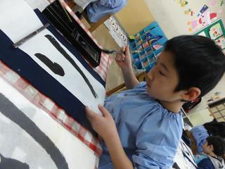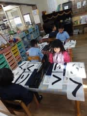 昨日5歳児さんは書初めを行いました。