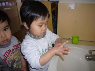 石鹸を泡立てて上手に洗っていますね(^_^)