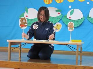 最後のコーナーでは、保育士から子どもたちへペープサートのプレゼントです