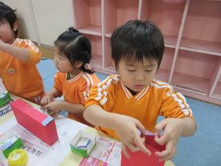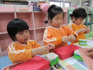 4・5歳児の保育室では、女の子がニコニコしながら、何か作っていました(^^) 「何を作っているの?」 尋ねても「ひ・み・つ」と教えてくれません さーて何ができるのでしょうね その実態が明らかになるのは、2月の某日 楽しみ…