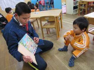 優しそうなお姉ちゃんは、子どもたちに絵本の読み語りをしてくれました。