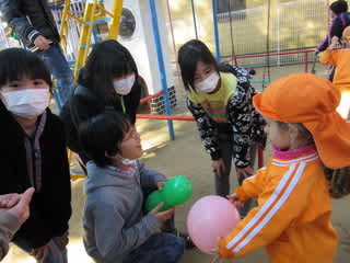 園庭でも風船や、遊具、お砂場で遊んでもらえた子どもたちです。