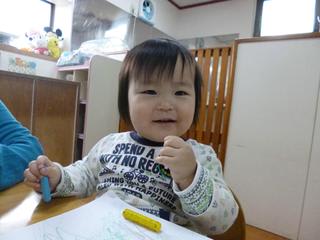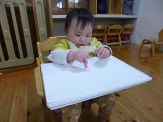 1歳になった0歳児さんは・・・お絵かき中ですね