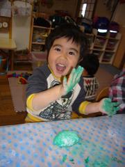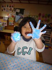 紙粘土に絵の具を混ぜて、「こーねこね(*^_^*)」