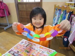 実は、色紙で輪っかを繋げて飾りを作っていたんですね