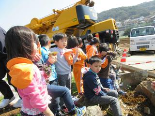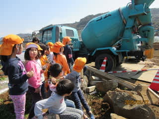 近くを通っていくミキサー車にも、歓声をあげる子どもたちでした。