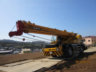 遠くからは長く伸びたクレーンの姿は圧巻!