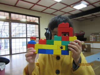 3歳ぱんだぐみの製作中拝見! お休みの多かった雨の土曜日、いつもより静かな会話で作りましたよ。ポーズもなかなかで完成姿披露です。