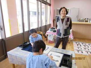 今日は、新しい園舎での初めての習字教室、そして、5歳児最後の習字教室が行われました。