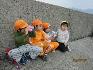 この日、2歳児さん~5歳児さんは近くの海岸まで、仲良くお散歩に行ってきました。