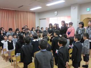 みんなでお見送りをして、在園児からプレゼントを渡しました。