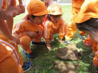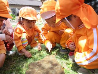 子どもたちが石をどかすと、何か発見したようです