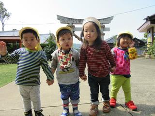 今日も天気の良い1日でしたね 子どもたちも朝から「今日も外に行ける?!」と、うきうき気分です 石垣に腰掛け、何をしているのかな? 「ん?ごはんば作りよると~」 楽しそうにお料理中でした その隣で「位置について、よ~い、ピ…